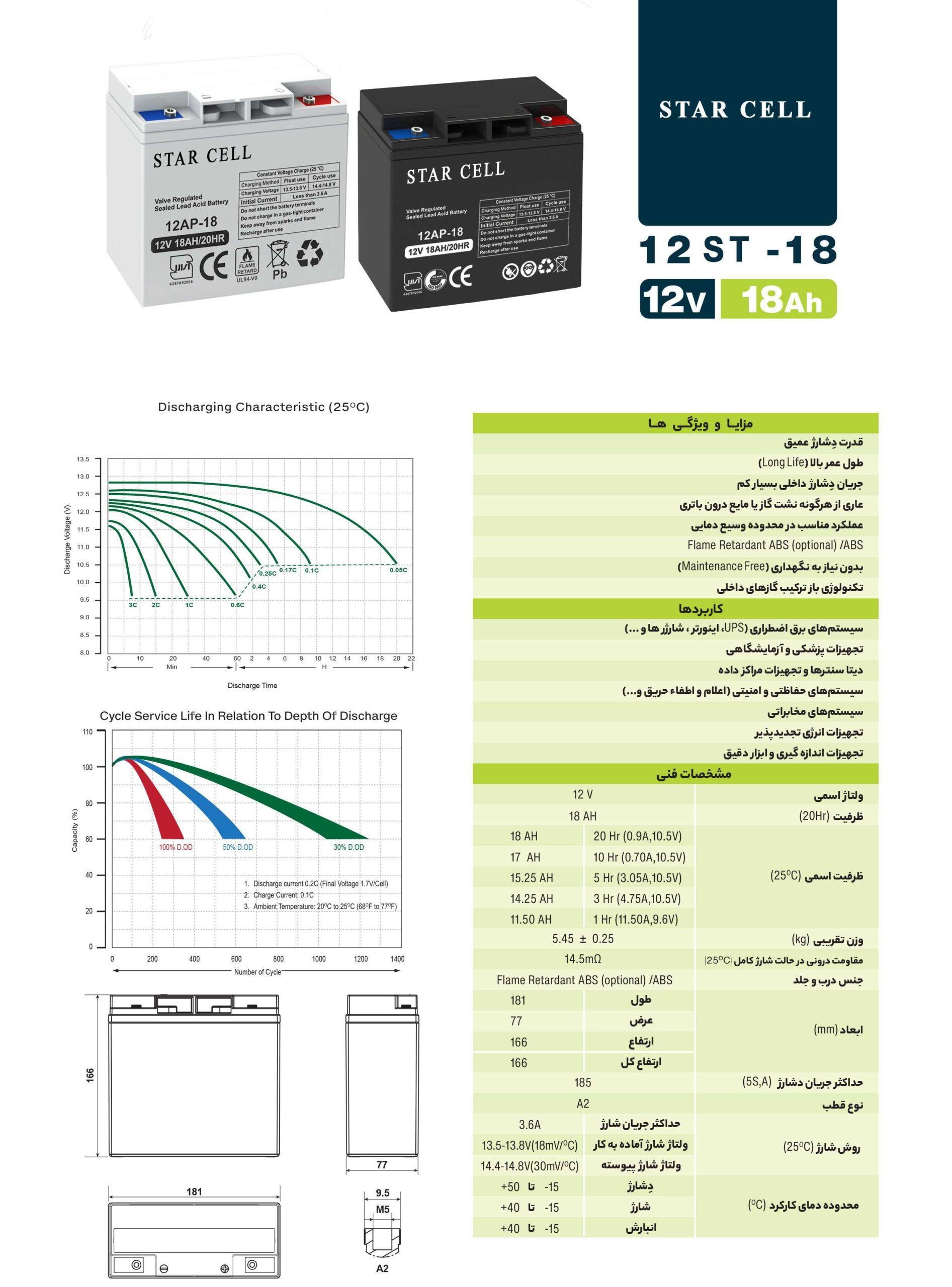 قیمت و خرید باتری یو پی اس 12 آمپر استارسل – UPS BATTERY STARCELL 12A