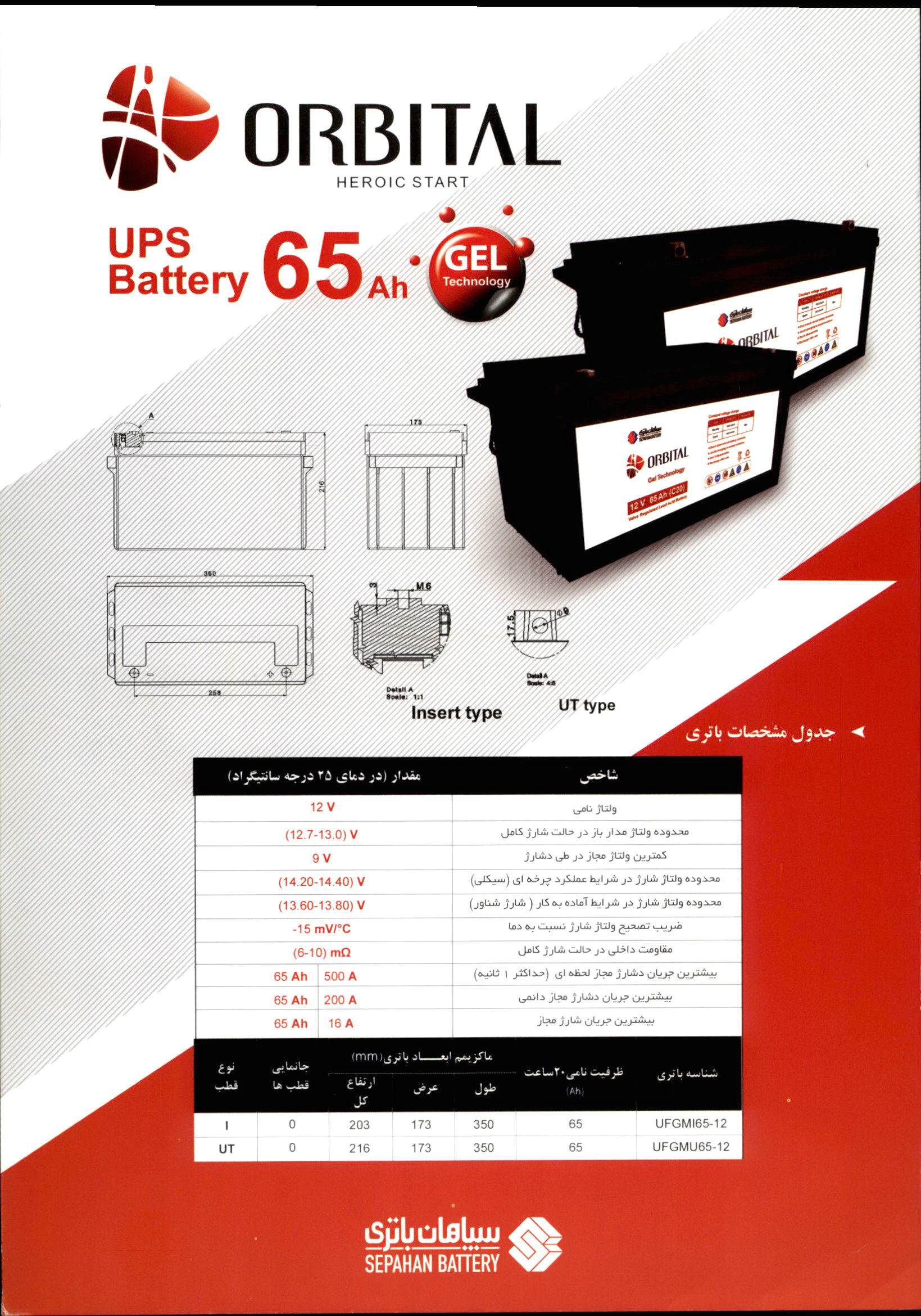 قیمت و خرید باتری یو پی اس 42 آمپر اوربیتال سپاهان باتری UFGMI42-12