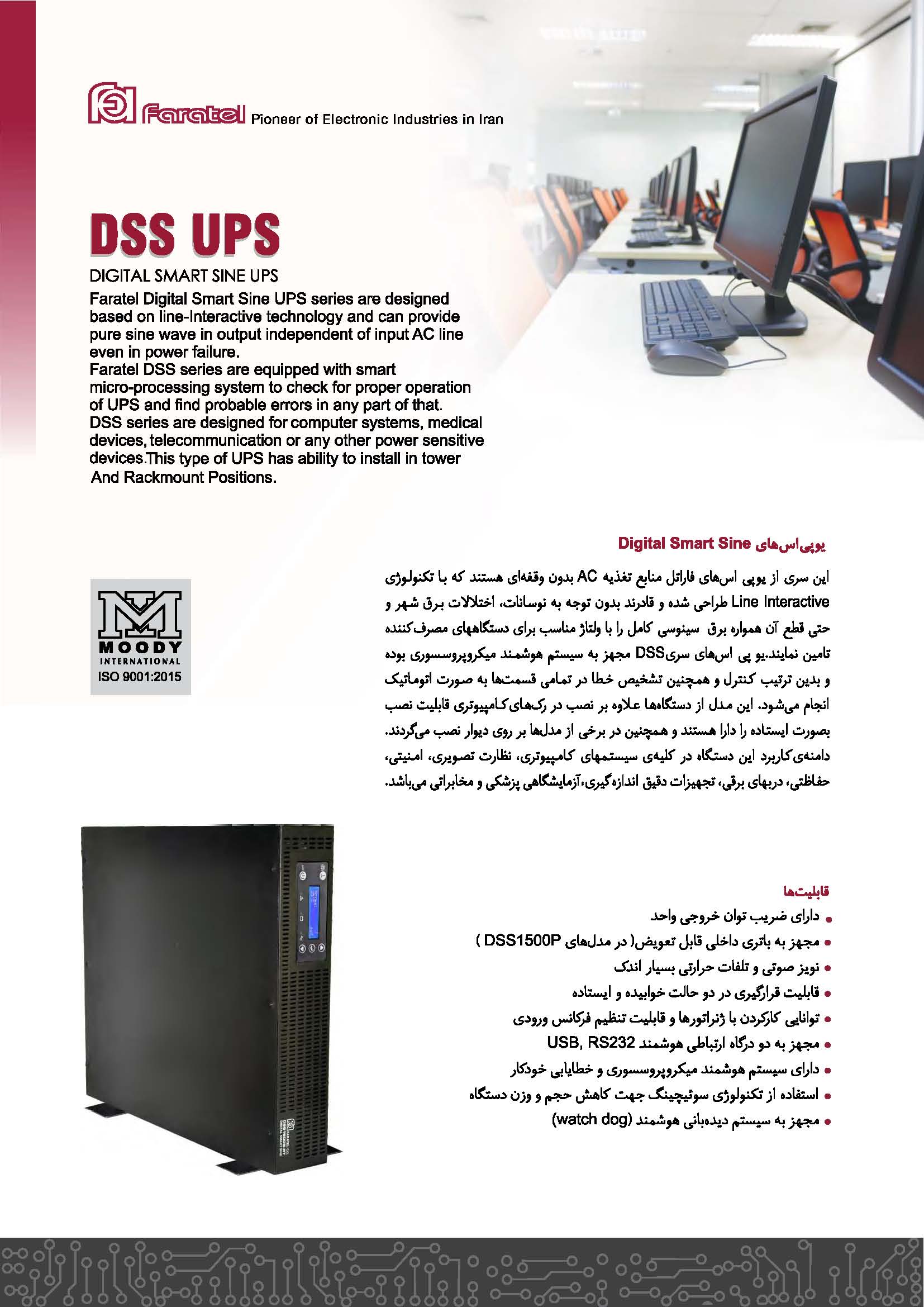 يوپياسهای Digital Smart Sine فاراتل منابع تغذيه AC بدون وقفه هستند که با تكنولوژي Line-Interactive طـراحي شده و قـادرند بدون توجه به نوسانات، اختلالات برق شهر و حتی قطع آن، برق سینوسی کامل را با ولتاژ مناسب تامین نمایند.