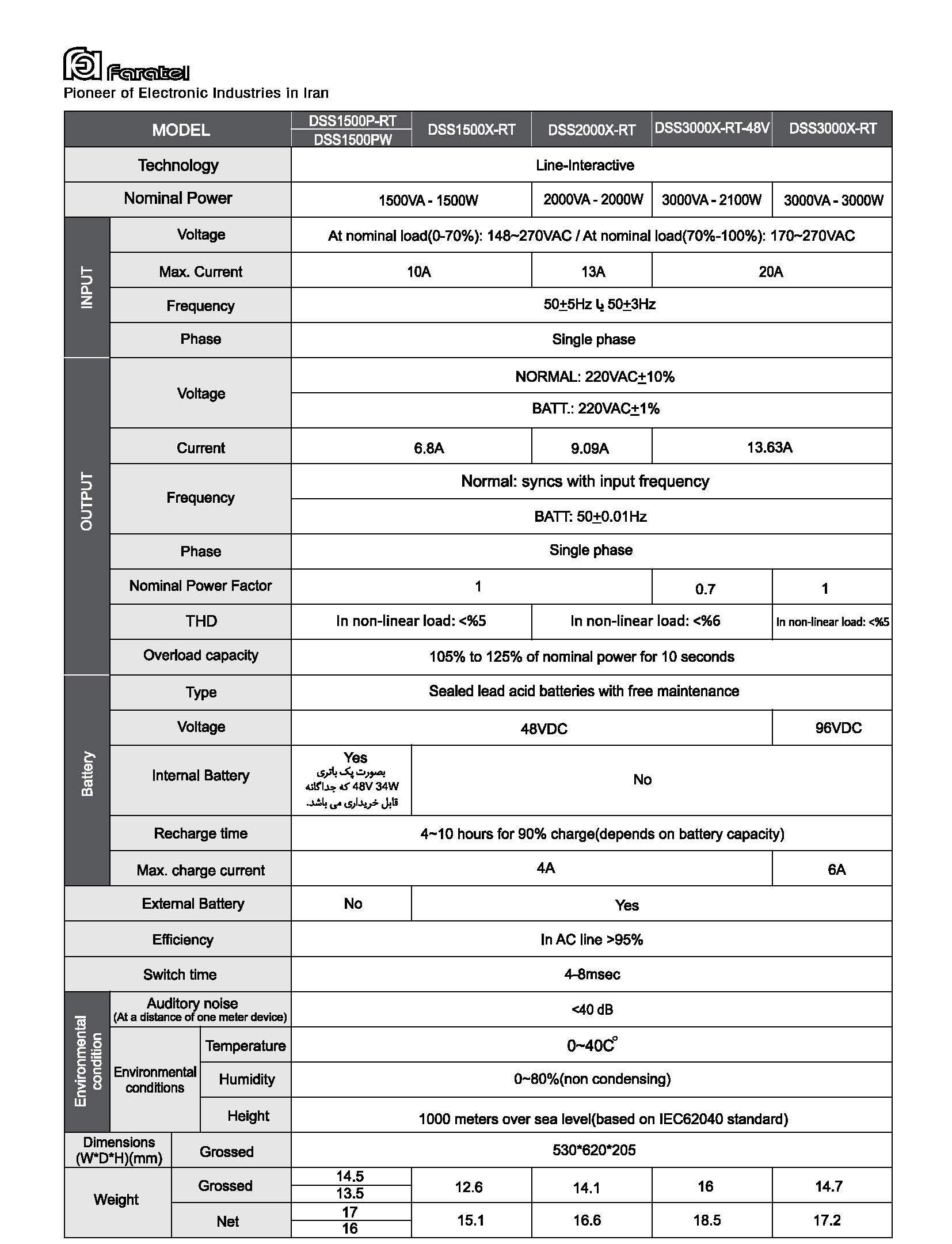 | فرکانس | 50±0.01Hz در حالت برق شهر سنکرون با ورودی / درحالت باتری |